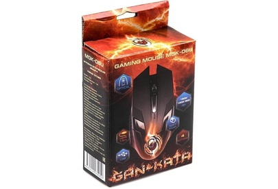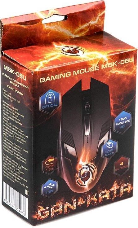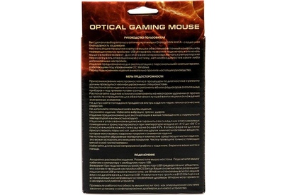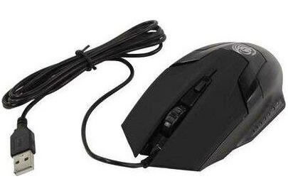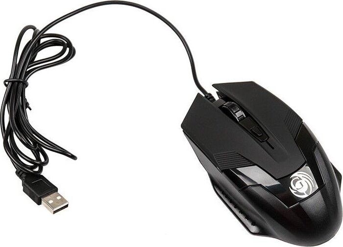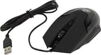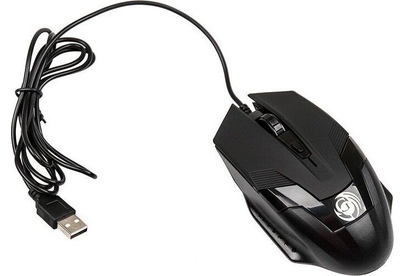 Мышь игровая, проводная, оптическая, интерфейс USB, изменяемое разрешение - 800/1200/1600 dpi, цветная подсветка, количество кнопок - 4+ролик, покрытие Soft-touch на панели кнопок, длина кабеля - 1,5 м.