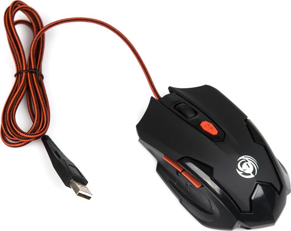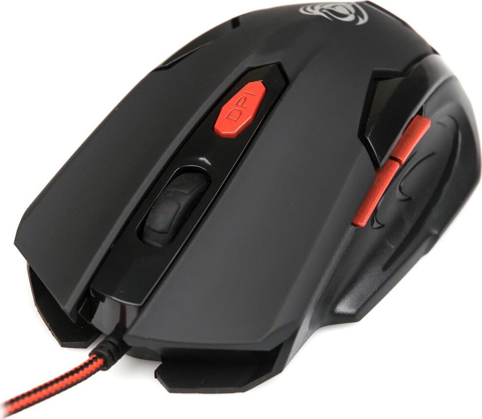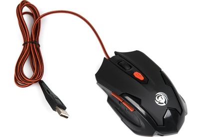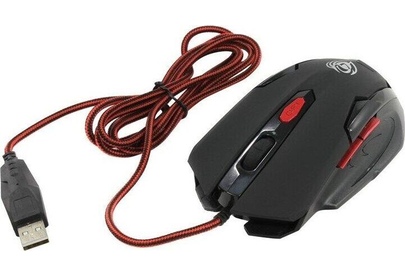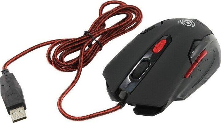 Геймерская мышь, интерфейс USB, оптическая (видимый диапазон), разрешение 800/1200/1600/2400, динамически изменяемое разрешение, изменяется циклически кнопкой "DPI", материал корпуса пластик софт-тач, количество кнопок 6, вертикальная прокрутка.