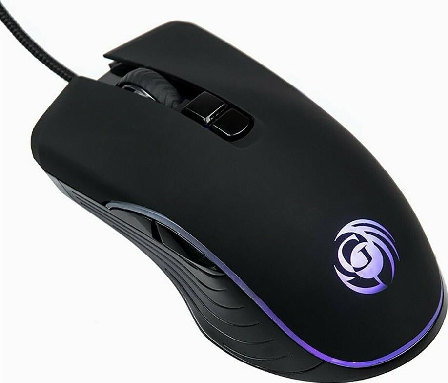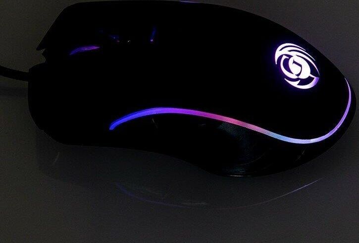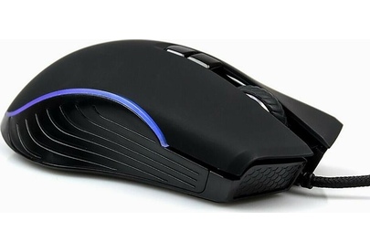 Геймерская мышь, проводная, оптическая, интерфейс USB, оптическая (видимый диапазон), изменяемое разрешение - 1200/1600/2400/3200 dpi, количество кнопок - 7, вертикальная прокрутка, тихий клик, красивая подсветка по периметру, материал корпуса - черный пластик, верхняя панель с кнопками - пластик софт-тач.