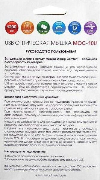 Модель MOC-10U Интерфейс USB Тип оптическая Разрешение, CPI 1200 Динамически изменяемое разрешение Нет Материал корпуса пластик Количество кнопок 3 Прокрутка вертикальная Особенности модели Компактная лёгкая симметричная мышь Длина кабеля, м 1,2 Размеры (В*Ш*Г, мм), max 95*55*30 Вес нетто, г. (без кабеля/батареек/грузиков и т.п.) 30 Комплект поставки мышь - 1 шт, гарантийный талон - 1 шт, упаковка - 1 шт Код ТНВЭД 8471607000