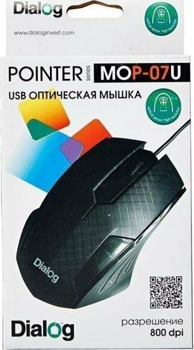 Мышь проводная, интерфейс USB, оптическая (видимый диапазон), разрешение 800, материал корпуса пластик, количество кнопок 3, вертикальная прокрутка.