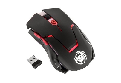 Мышь геймерская, беспроводная, количество кнпок - 6, интерфейс USB, оптическая (видимый диапазон), разрешение динамически изменяемое 600/800/1200/1600 dpi, материал корпуса - верхняя панель - пластик софт-тач, радиоинтерфейс 2.4 гГц, радиус действия до 10 метров.