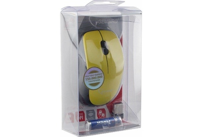 Мышь беспров. Gembird MUSW-360-LM, 2.4ГГц, лазерный лимон, мини, 3кн, 1000DPI, блистер