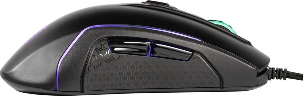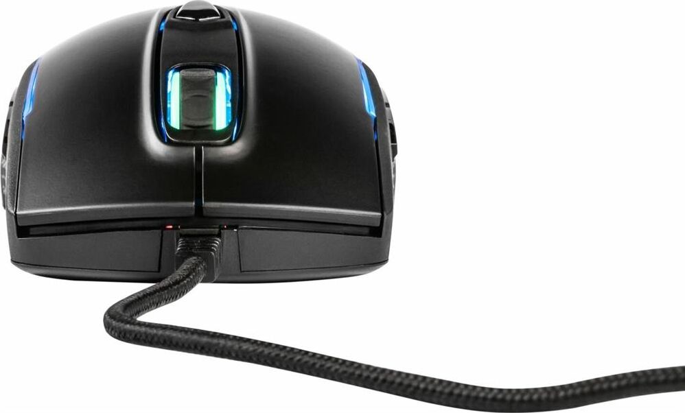 Симметричный дизайн. Настраиваемая RGB-подсветка. Оптический сенсор Avago 3050. 8 удобно расположенных кнопок. Кабель в оплетке. Оптимизированный дизайн для геймеров. Встроенные утяжелители.