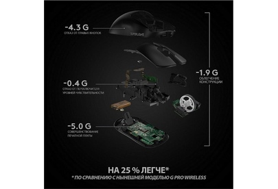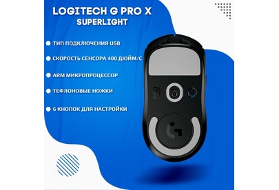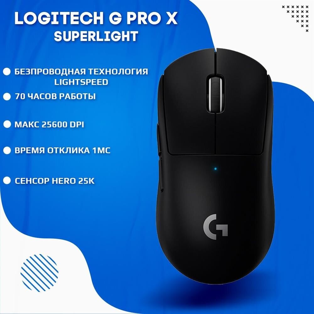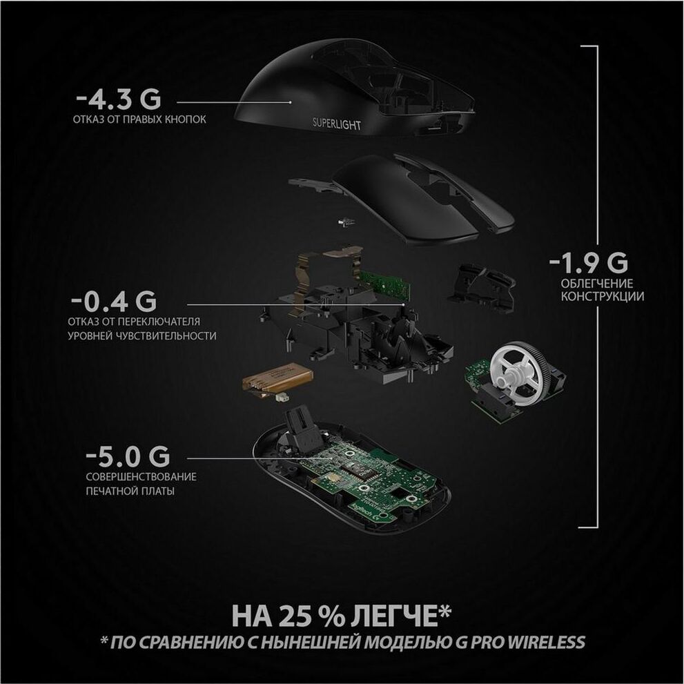 Мышь беспроводная LOGITECH Мышь G Pro X Superlight черный оптическая 25600dpi беспров. USB 4but (910-005884)