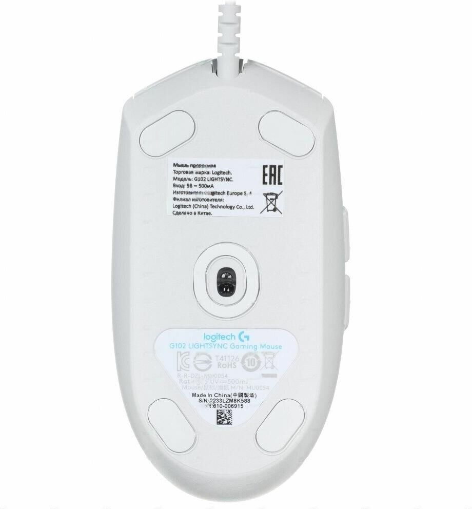 Мышь беспроводная LOGITECH Мышь проводная игровая G102 LIGHTSYNC white (USB, оптическая, 8000 dpi, 6but) (910-005809)
