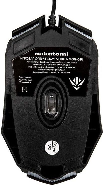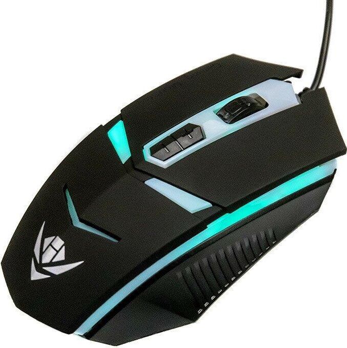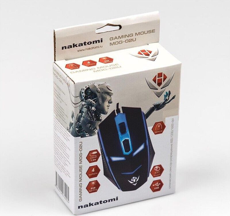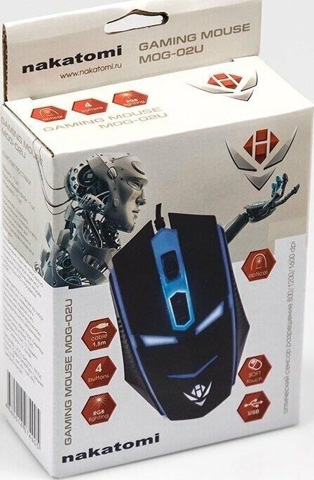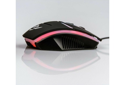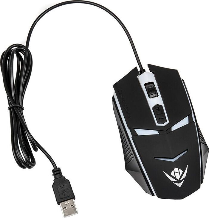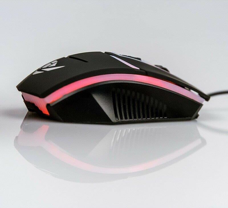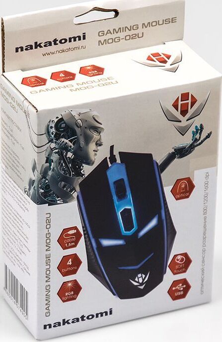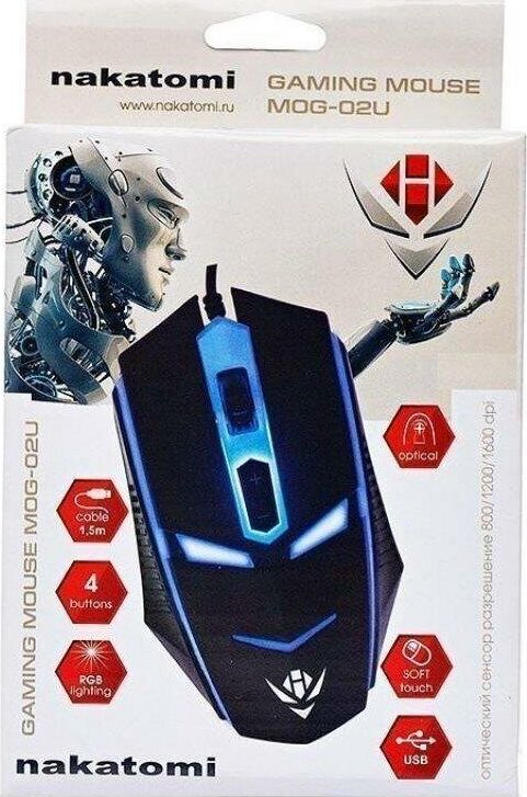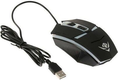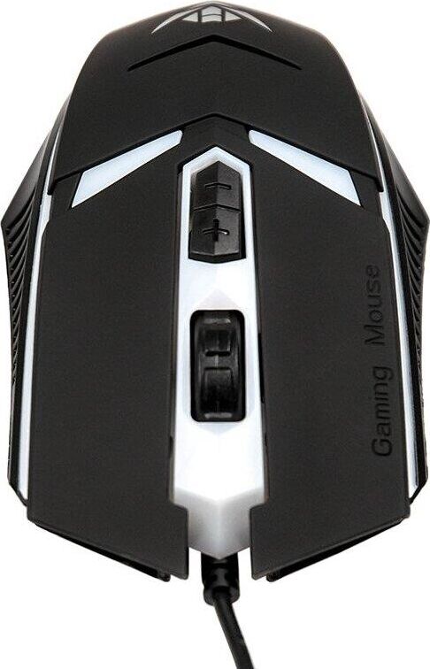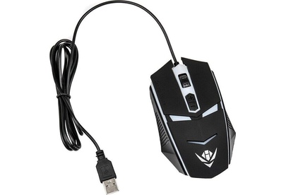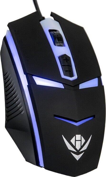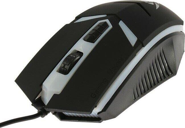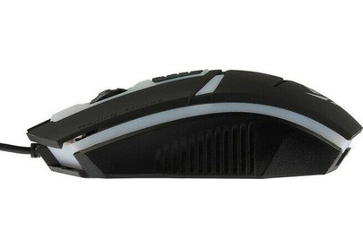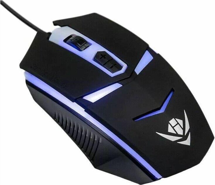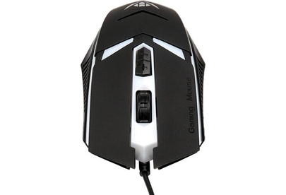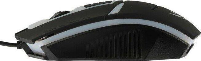 Мышь игровая, проводная, оптическая, интерфейс USB, 5 кнопок, колесо прокрутки, изменяемое разрешение 800/1200/1600 dpi,материал корпуса - матовый черный пластик, верхняя панель с кнопками - пластик софт-тач, вставки из полупрозрачного светлого пластика, изменяемая подсветка, длина кабеля - 1,5 м.