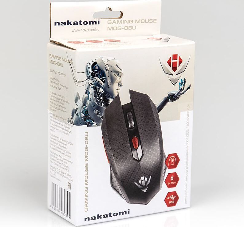 Мышь MOG-08U Nakatomi Gaming mouse - игровая, 6 кнопок + ролик прокрутки, USB, черная
