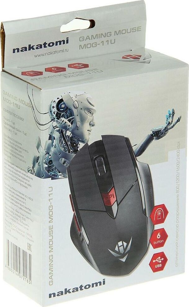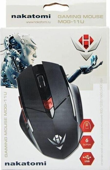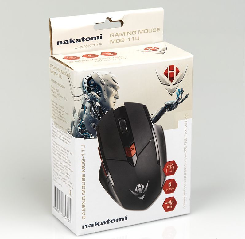 Мышь MOG-11U Nakatomi Gaming mouse - игровая, 6 кнопок + ролик прокрутки, USB, черная
