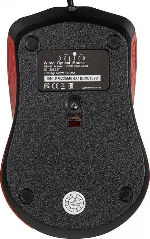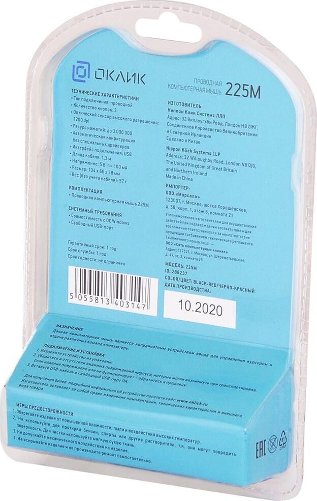 OKLICK 225M черный/красный оптическая (1200dpi) USB (2but)