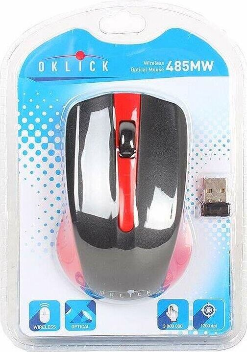 Мышь беспроводная OKLICK 485MW черный/красный оптическая (1200dpi) беспроводная USB (2but)