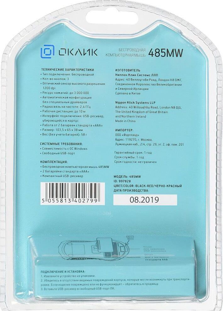 Мышь беспроводная, оптическая, количество кнопок - 2+колесо прокрутки, разрешение - 1200 dpi, радиус действия - 10 м.