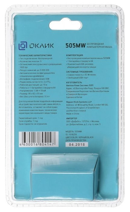 Мышь беспроводная OKLICK 505MW черный оптическая (1000dpi) беспроводная USB (3but)