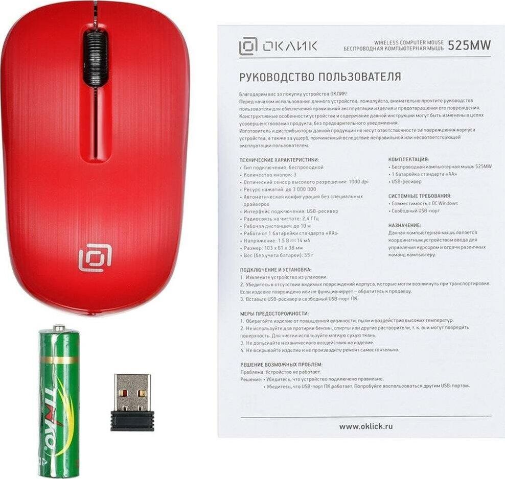 Мышь беспроводная OKLICK 525MW красный