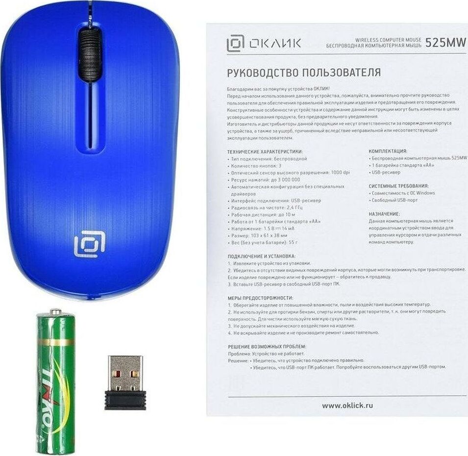 Мышь беспроводная, оптическая, интерфейс USB, разрешение 1000 dpi, количество клавиш - 3, цвет : синий