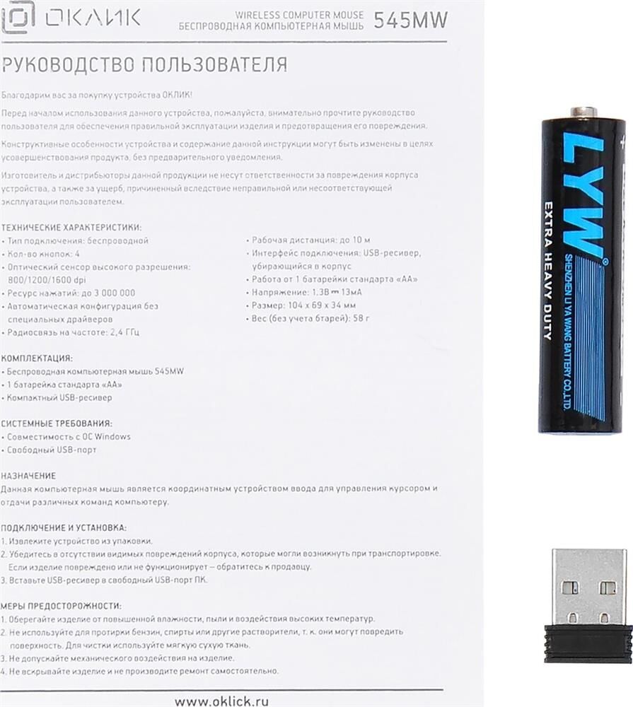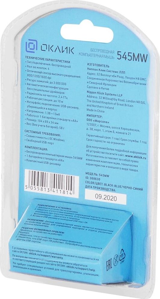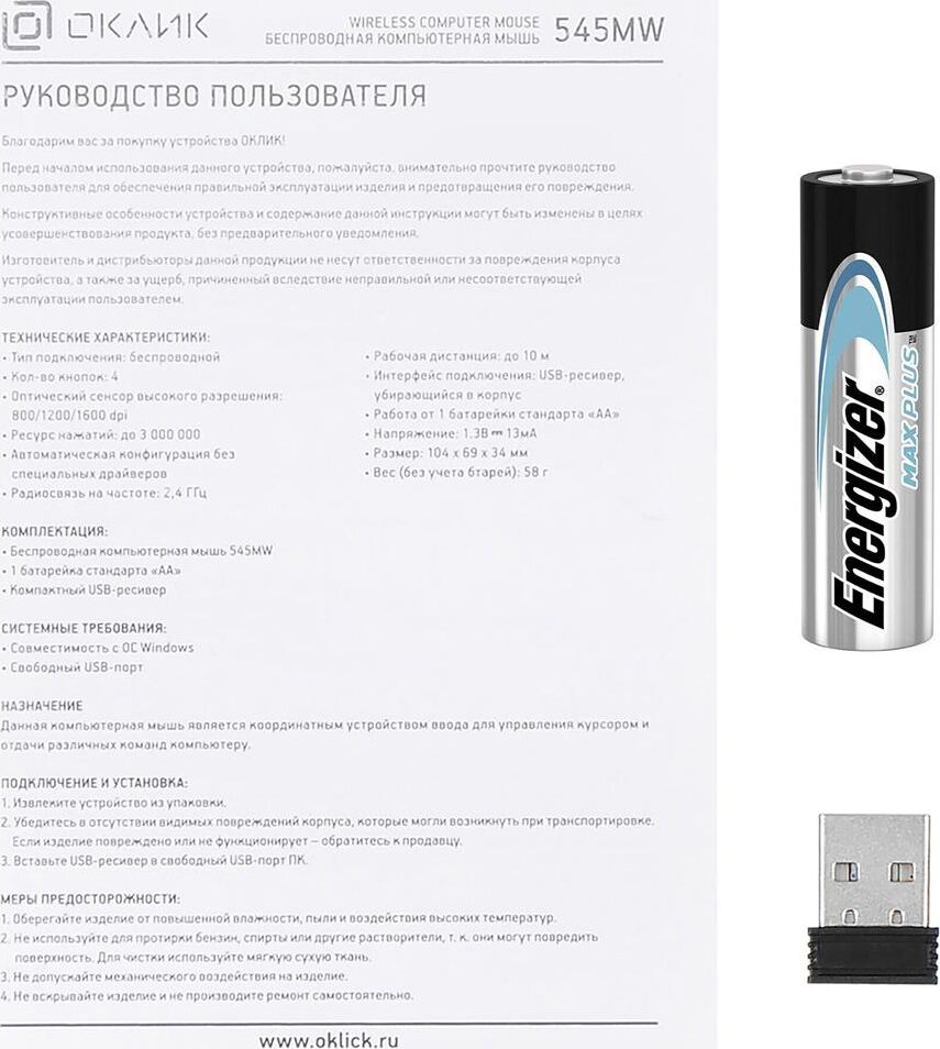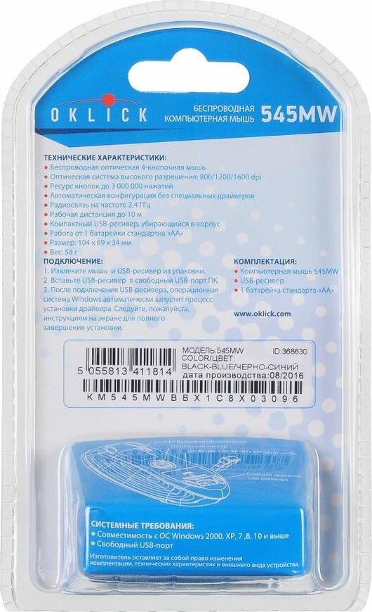 OKLICK 545MW черный/синий оптическая (1600dpi) беспроводная USB (3but)
