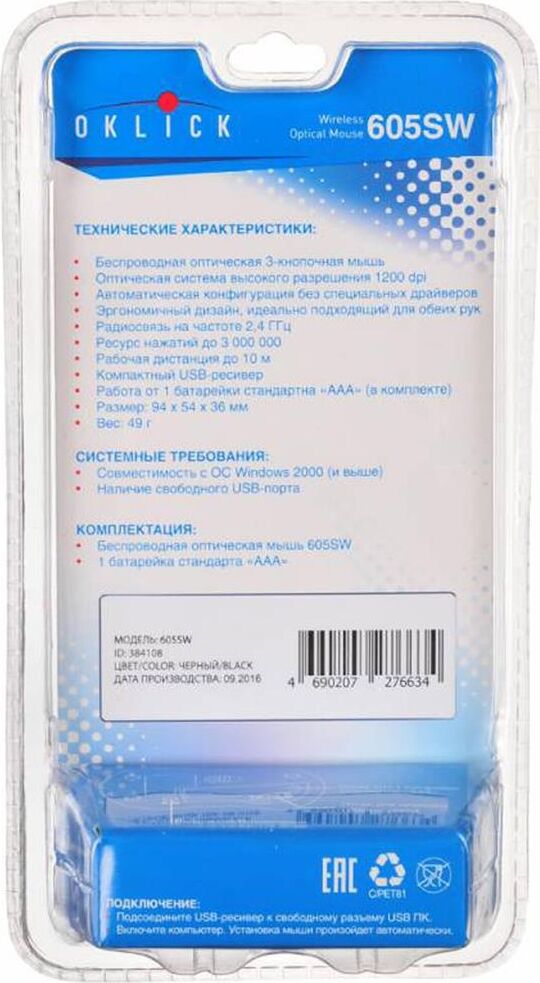 Мышь беспроводная OKLICK 605SW черный оптическая (1200dpi) беспроводная USB (3but)