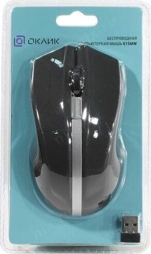 Мышь беспроводная OKLICK 615MW черный/серебристый оптическая (1000dpi) беспроводная USB (2but)