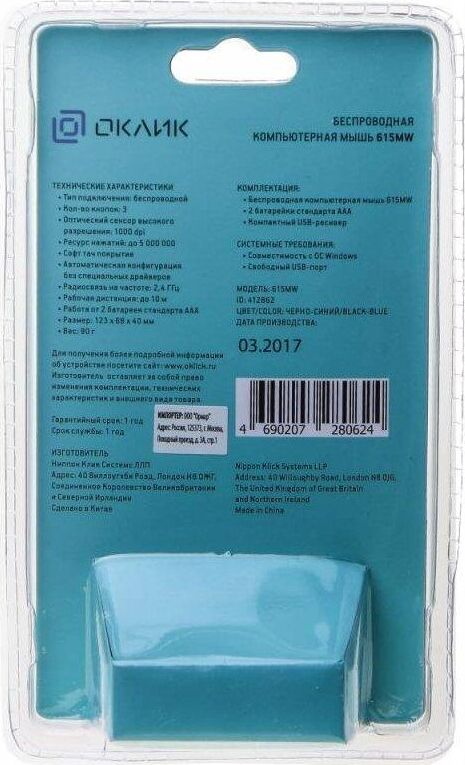 Мышь беспроводная OKLICK 615MW черный/синий оптическая (1000dpi) беспроводная USB (2but)