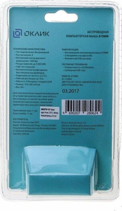 OKLICK 615MW черный/синий оптическая (1000dpi) беспроводная USB (2but)