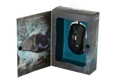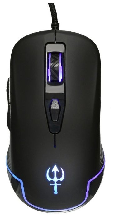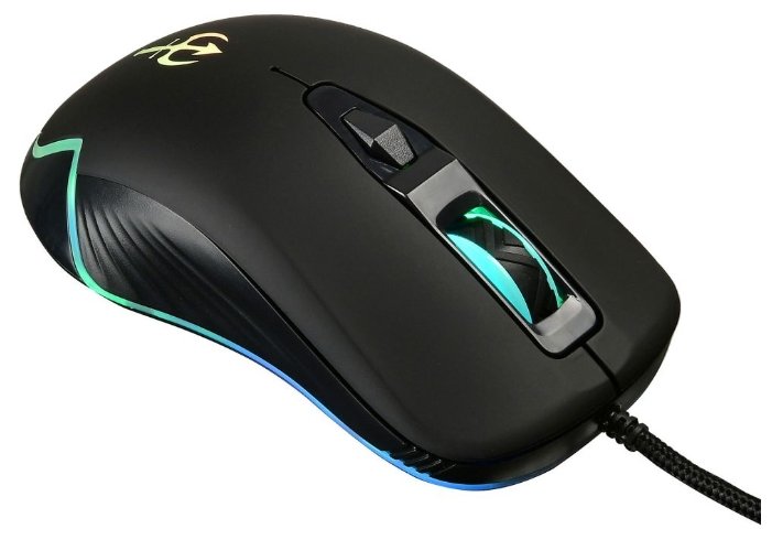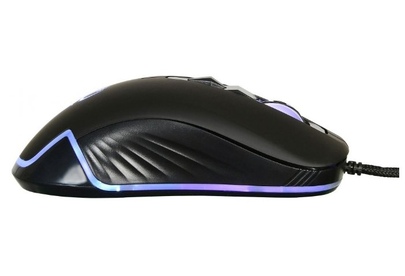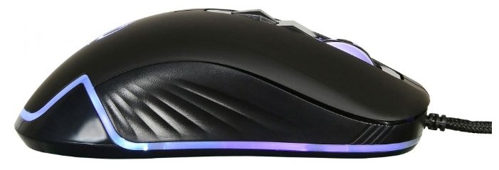 Мышь игровая, проводная, оптическая, интерфейс USB, количество кнопок - 6, колесо проктуртки, изменяемое разрешение - 800/1000/1600/2400 dpi, покрытие soft-touch, яркая подсветка корпуса, длина кабеля - 1,5м