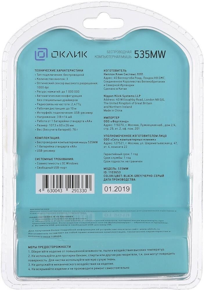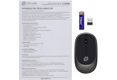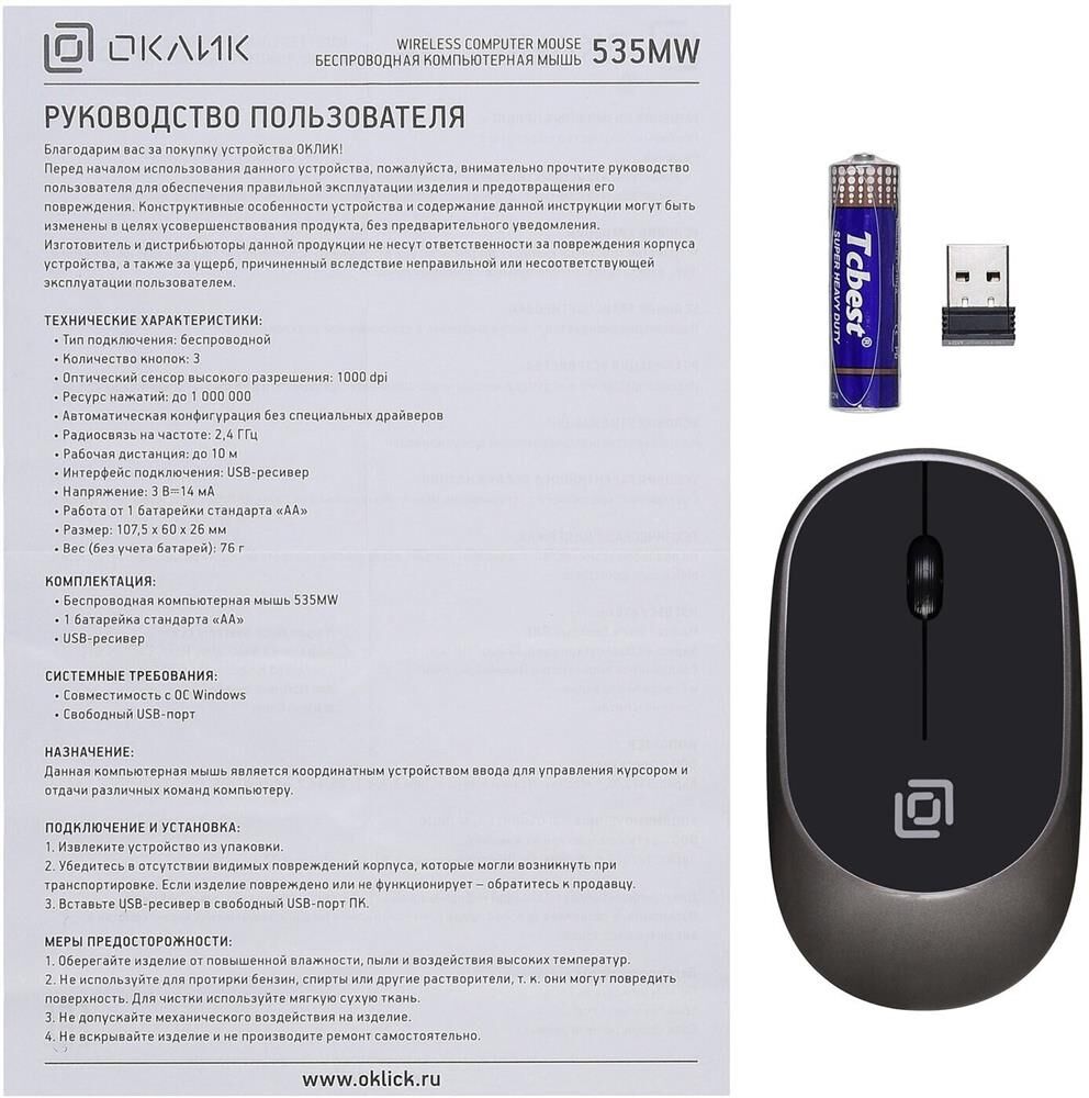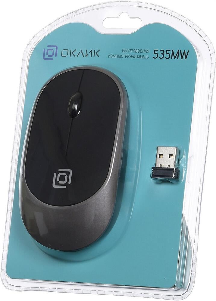 Мышь беспроводная OKLICK Мышь 535MW, оптическая, беспроводная, USB, черный и серый [1103653]