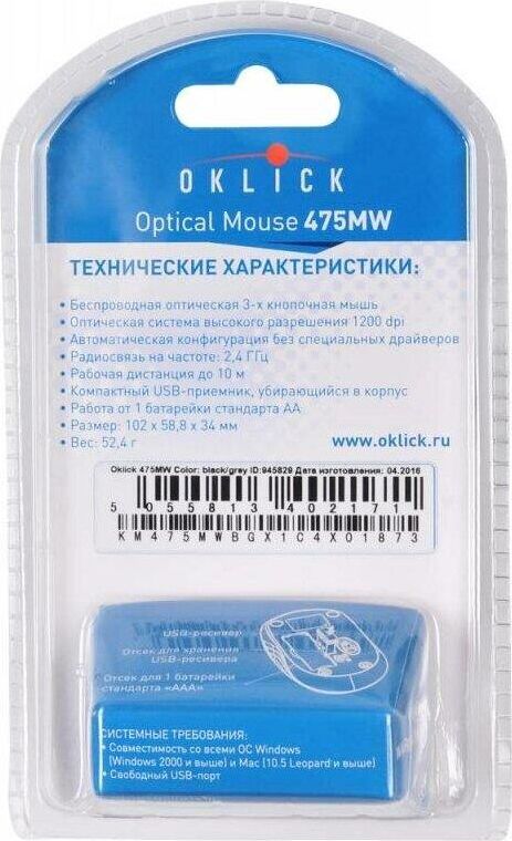 Мышь беспроводная ОКЛИК 475MW черный/серый