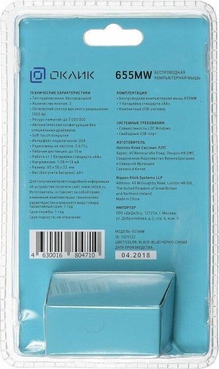 Мышь беспроводная ОКЛИК 655MW черный/синий