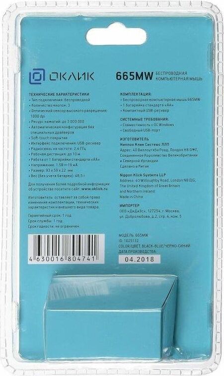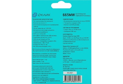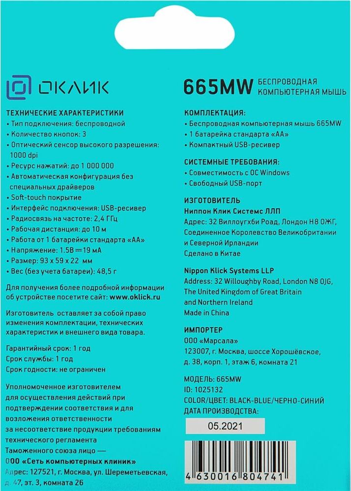 Мышь беспроводная ОКЛИК 665MW черный/синий