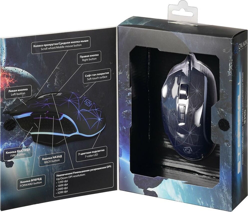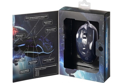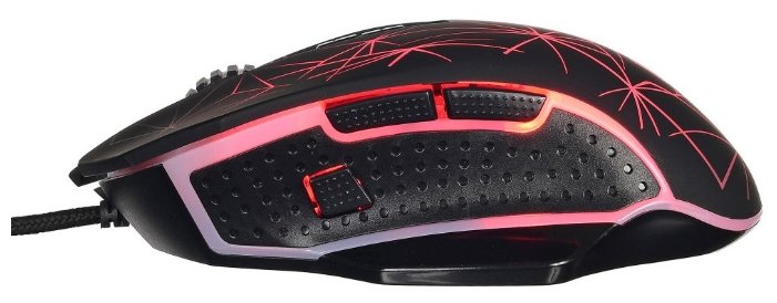 Мышь игровая, проводная, интерфейс USB, количество кнопок - 7, изменяемое разрешение сенсора - 1200/1600/2400/3200 dpi, подсветка, кабель в тканевой оплетке, длина кабеля - 1,5 м .