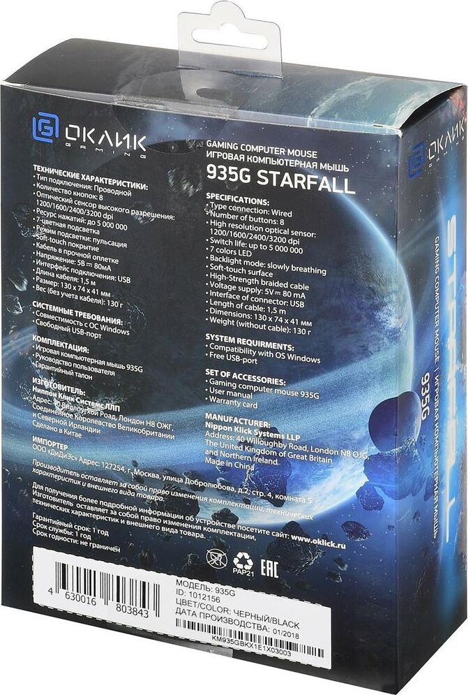 Мышь беспроводная ОКЛИК 935G STARFALL