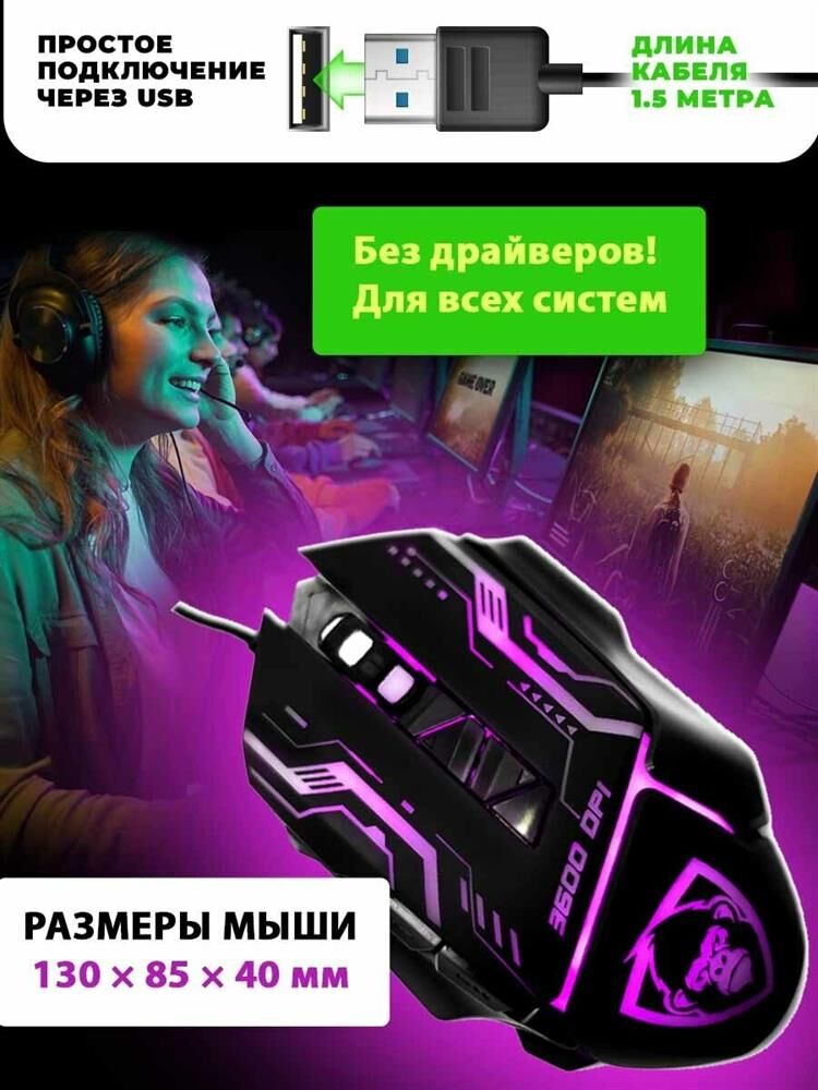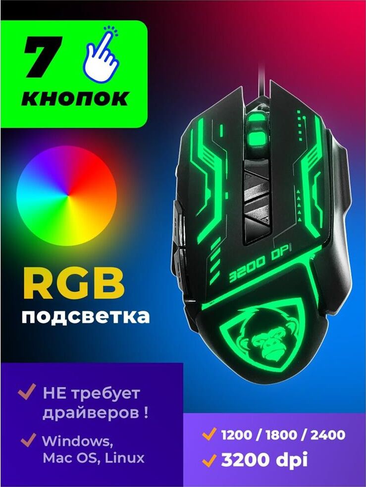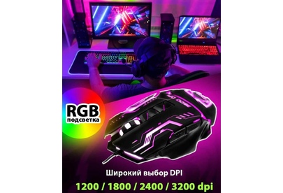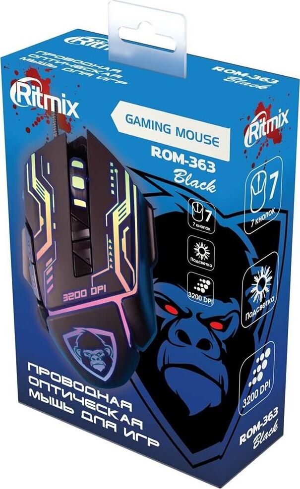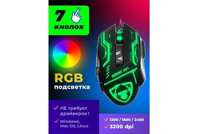 Мышь проводная, оптическая, интерфейс USB, количество кнопок - 7, колесо прокрутки, изменяемое разрешение 1200 / 1800 / 2400 / 3200 dpi, длина кабеля - 1,5 м.