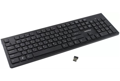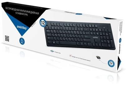 Вес: 420 г Радиус действия: до 10 м Интерфейс подключения: USB Количество „горячих“ клавиш: 12 Тип клавиатуры: Мембранная Цвет клавиатуры: черный Питание клавиатуры: 1 батарейка ААА Размер клавиатуры: 437*138*20 мм