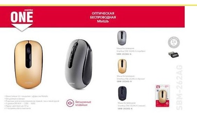 Мышь беспроводная, износостойкое UV-покрытие с эффектом Metallic; бесшумные клавиши; подходит для использования как правой, так и левой рукой; 3 уровня DPI: 800, 1200, 1600; радиус действия - до 10 м; 1 батарейка АА в комплекте.