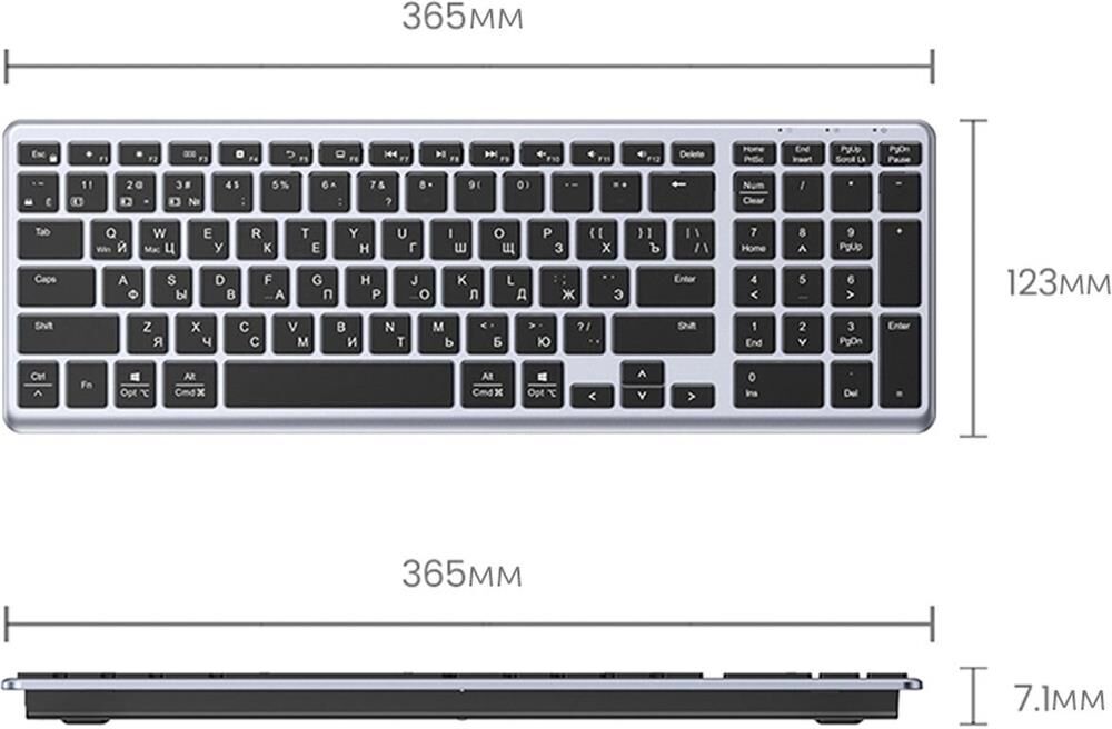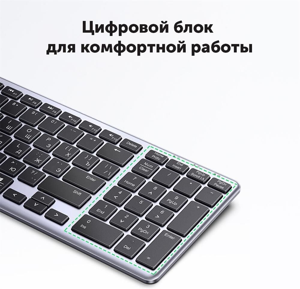Мышь беспроводная UGREEN Клавиатура беспроводная KU005 (15956) 2.4GHz Bluetooth5.0 Ultra Slim Wireless Keyboard. Цвет: