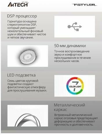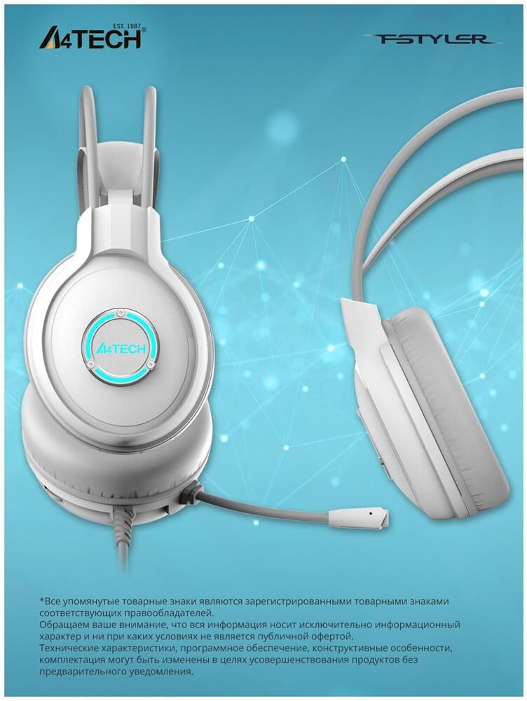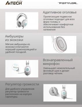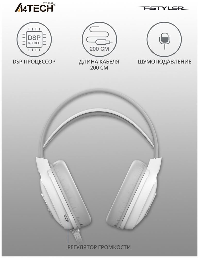 Наушники A4TECH Fstyler FH300U белый 2м мониторные USB оголовье (FH300U WHITE)
