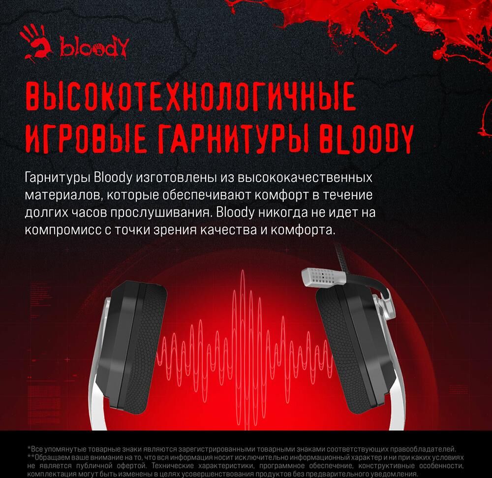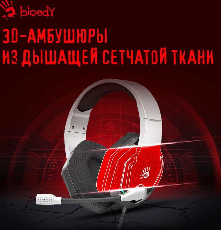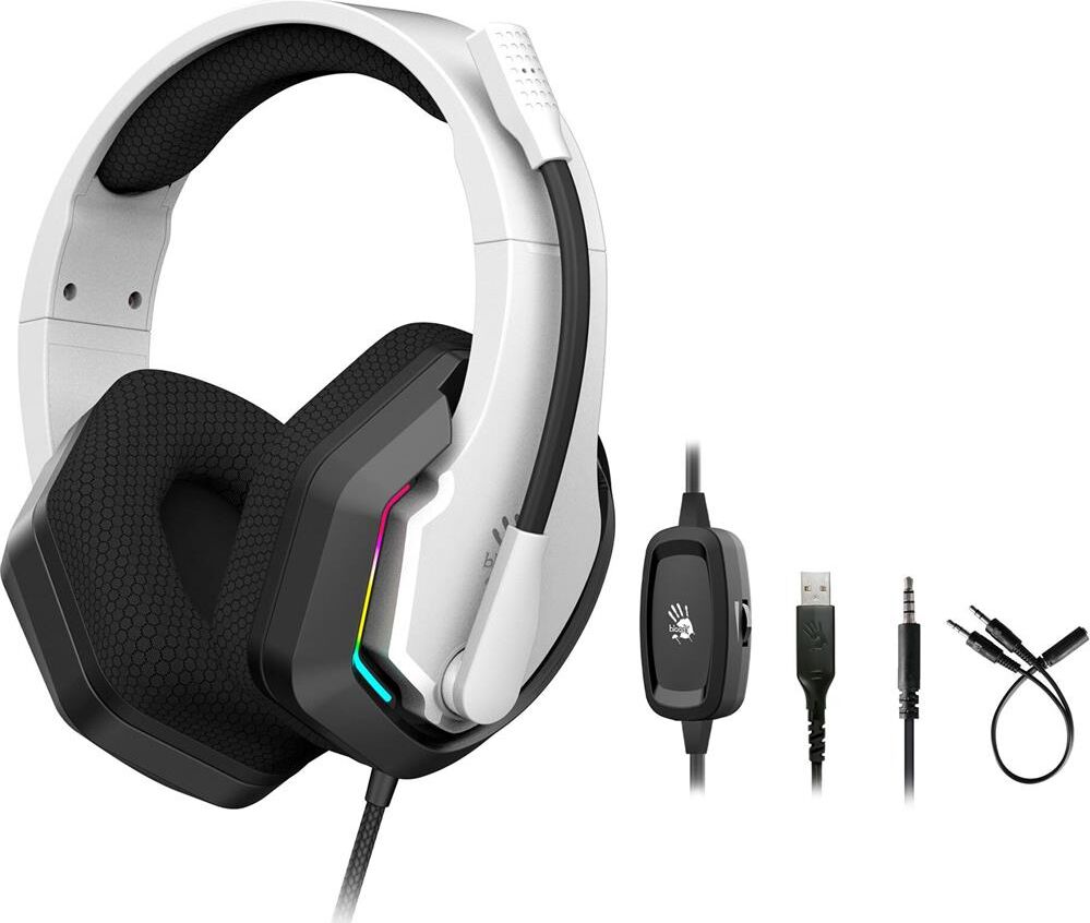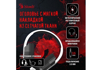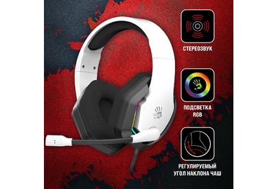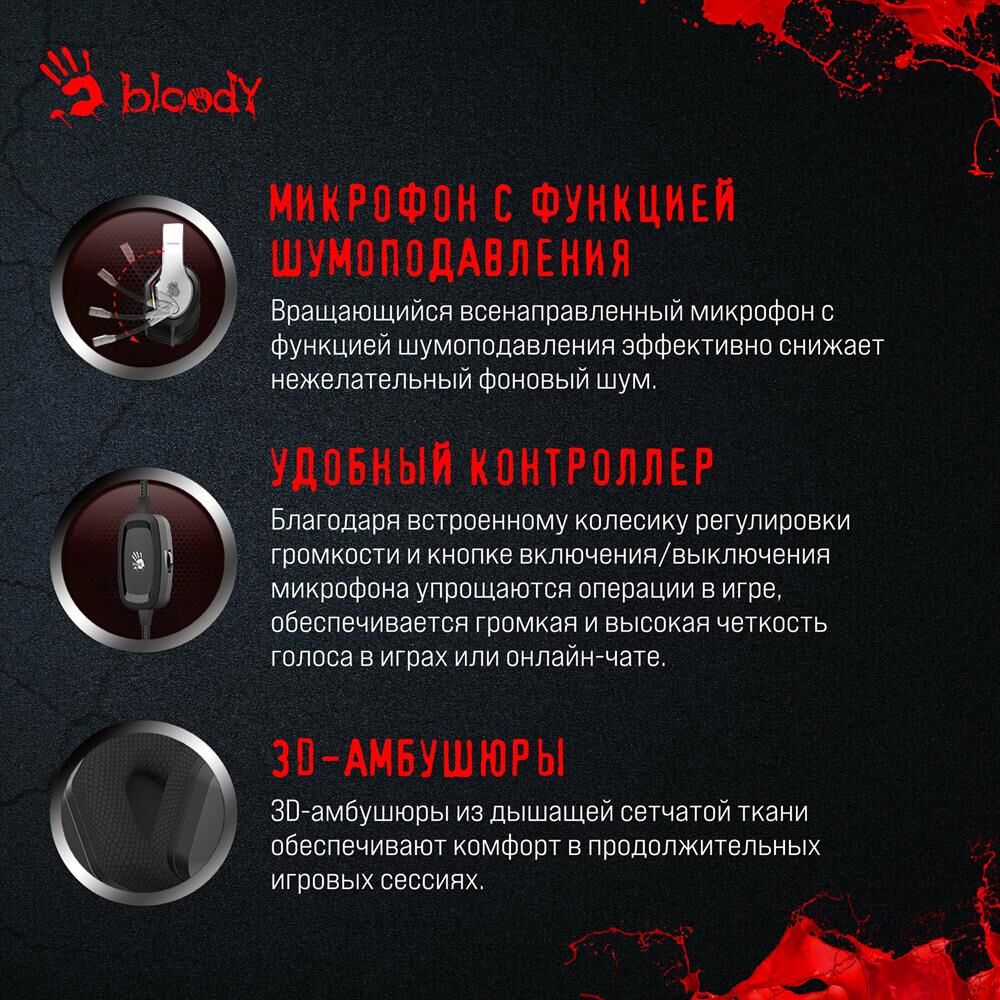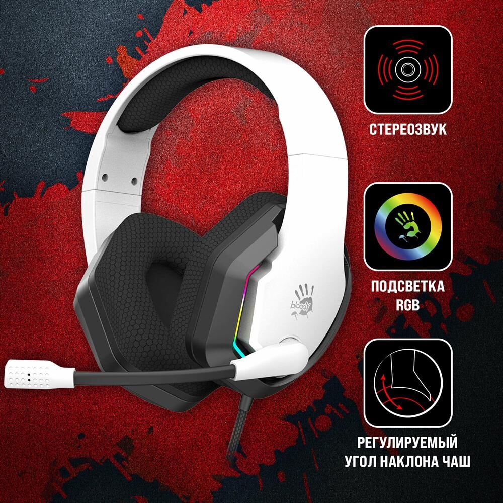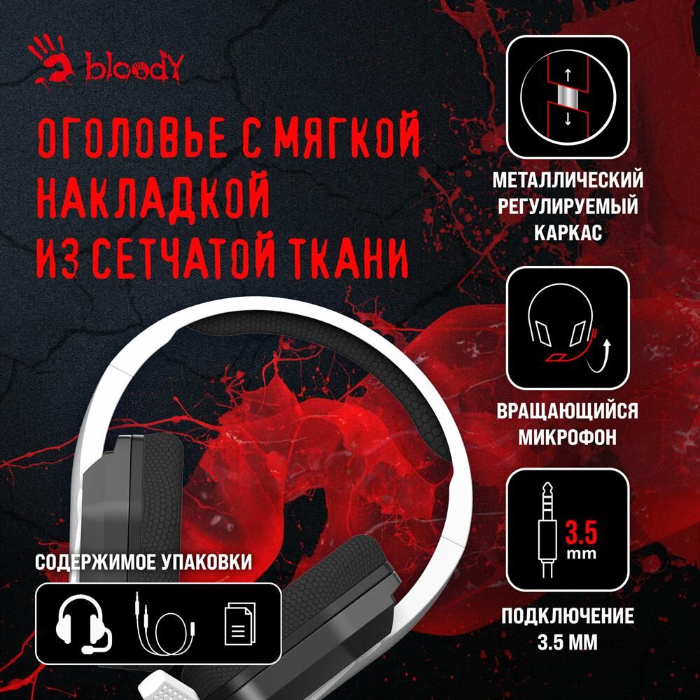 Наушники A4TECH Гарнитура игровая Bloody G260p, для компьютера, мониторные, проводные, белый / черный