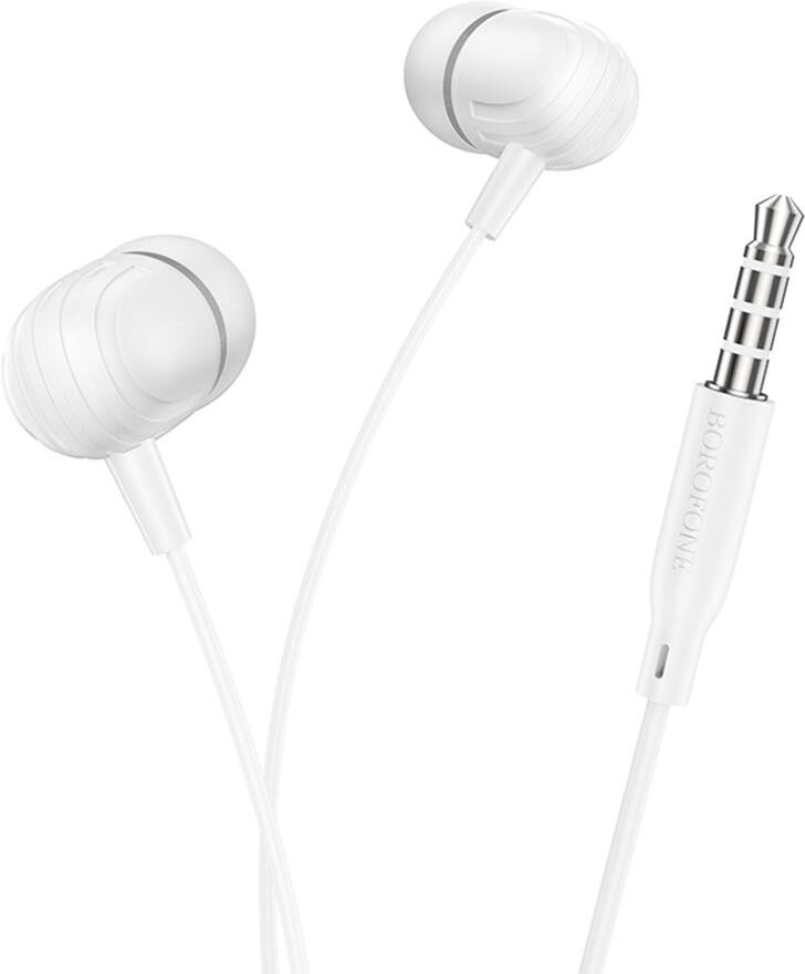 Наушники проводные Borofone с микрофоном оснащены динамиками с прекрасной акустической системой для качественного звука и поддерживают опцию управления звонками. Вставная конструкция обеспечивает необходимую шумоизоляцию, блокируя посторонние шумы. Гарнитура снабжена встроенным микрофоном – для общения не придётся держать в руках телефон. Вы можете использовать их с планшетом, телефоном и другими устройствами. Они маленькие и удобные, поэтому подходят как для повседневного использования, так и для того, чтобы брать их с собой в поездку. Разъем подключения AUX 3.5, длина кабеля 1.2м. Выполнены в двух цветах.