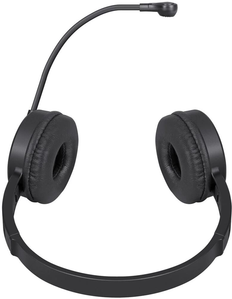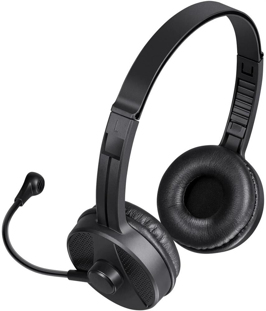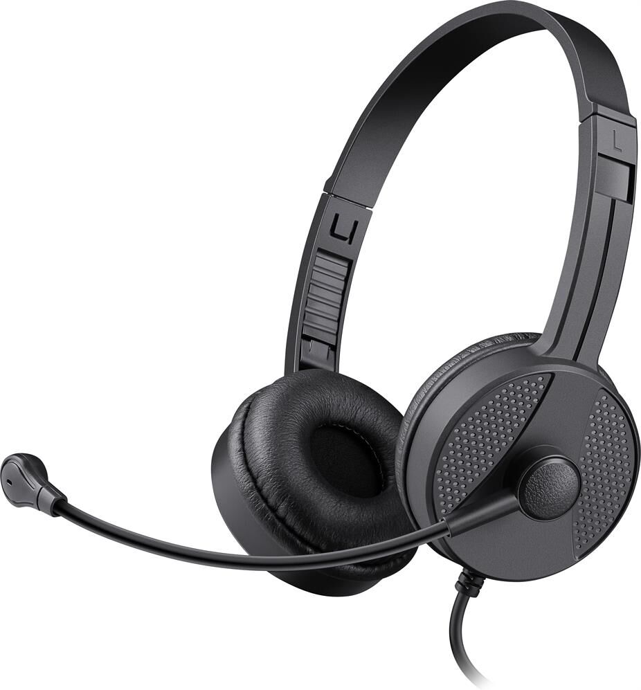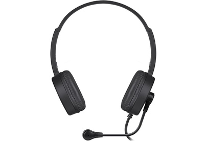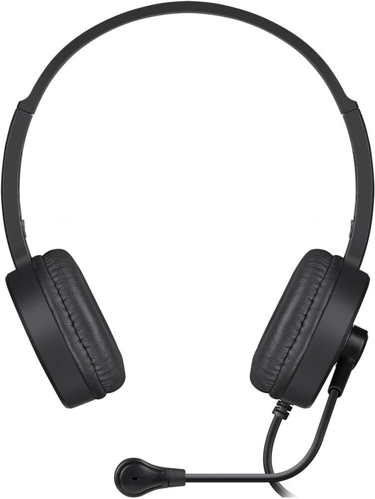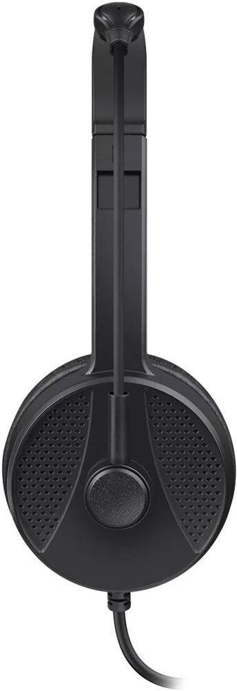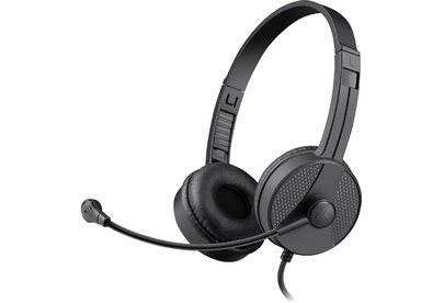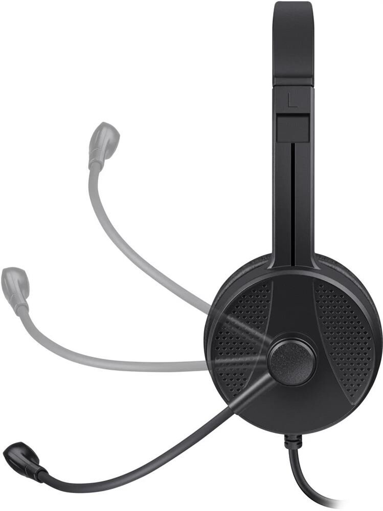 Удобная компьютерная гарнитура с гибким микрофоном, мягкими амбушюрами и регулятором громкости.