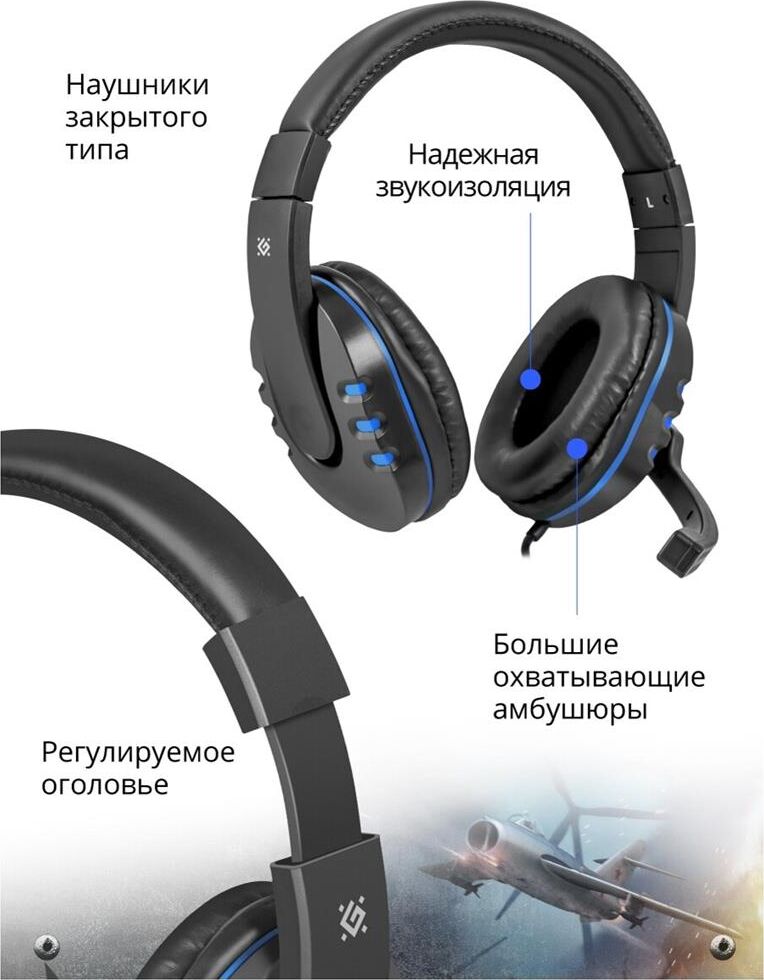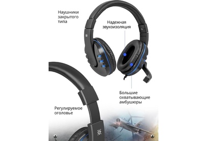 Наушники DEFENDER (64118) Warhead G-160 черный/синий