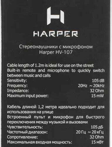 Наушники Harper HV-107 обладают мощным звучанием с глубокими нижними частотами.Компактный дизайн и качество исполнения гарантируют высочайший комфорт.Могут использоваться для широкого круга задач, устойчивы к любым погодным условиям.