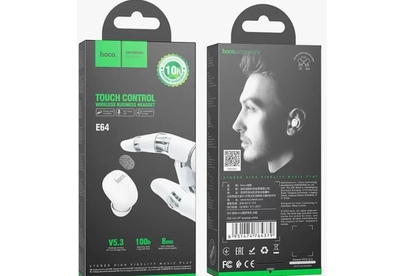 Маленькая Bluetooth-гарнитура E64 может работать до 10 часов в режиме разговора или прослушивания музыки и до 100 часов в режиме ожидания. Время заряда аккумулятора ёмкостью 50 мАч составляет около 50 минут. Поддерживается версия Bluetooth 5.3. Голосовые подсказки - на китайском и английском языках.