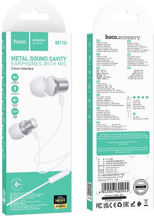 Наушники HOCO (6942007602945) M110 Encourage Silver