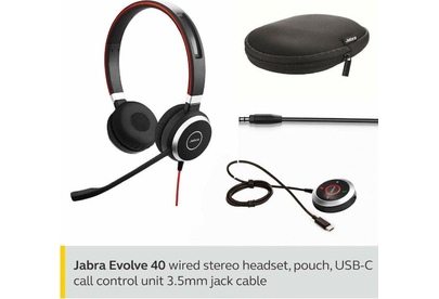 Наушники JABRA Гарнитура Evolve 40 MS, для контактных центров, накладные, проводные USB/3,5 мм, черный [6399-