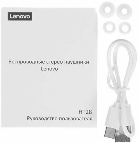 Наушники LENOVO Гарнитура внутриканальные HT28 белый беспроводные bluetooth в ушной раковине (УТ000023560)