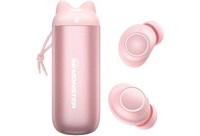 Наушники беспроводные TWS MONSTER Melody (MH22116), розовые. Необычный дизайн кейса, шнурок в комплекте, эргономичные наушники, великолепный фирменный звук, в комплекте 3 вставки и 3 накладки S/M/L.bluetooth v 5.3/chipset n/a/battery Earphones: 40mAh, Charging case 280mAh/water resistance IPX5/play time (50%) volume 6,5h