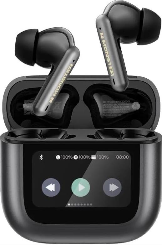 Эргономичный дизайн, шумоподавление ANC+ENC, LED touch экран, фирменный звук от MONSTER. bluetooth v 5.4/ chipset JL7003D8 + 7012F6/ battery- Earphones 30mAh, Charging Case 400mAh/ water resistance- IPX5/ play time (50% volume) 4h