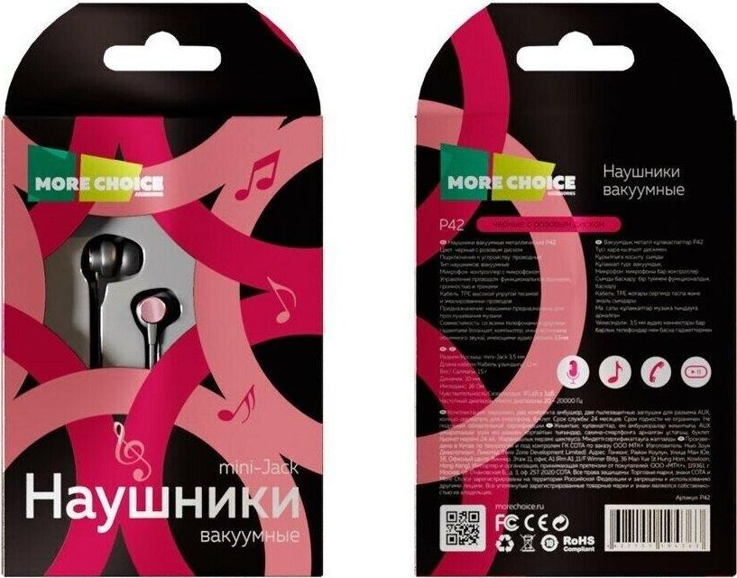 Наушники MORE CHOICE P42 Black Pink