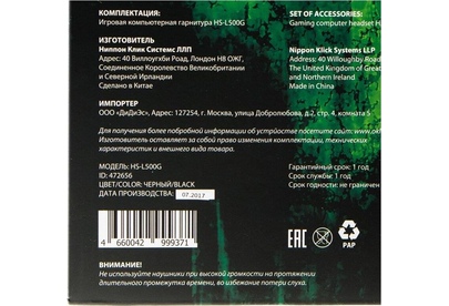 Игровая гарнитура ; Адаптивное оголовье; Диаметр мембраны: 40мм ; Чувствительность: 105 ± 3 дБ ; Сопротивление: 32 Ом; Диапазон частот: 20Гц - 20кГц; Тип микрофона: всенаправленный; Чувствительность микрофона: 54 ± 3 дБ ; Сопротивление < 2.2КОм; Длина кабеля: 2.2м.