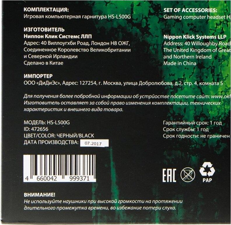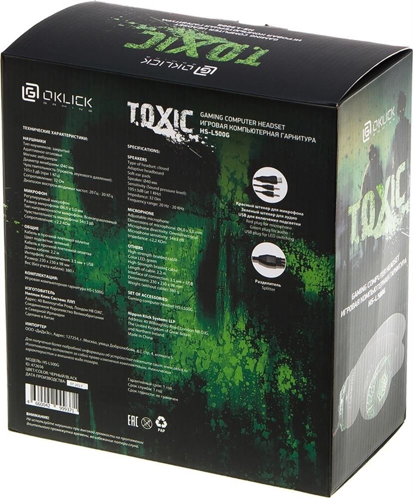 Наушники ОКЛИК HS-L500G TOXIC
